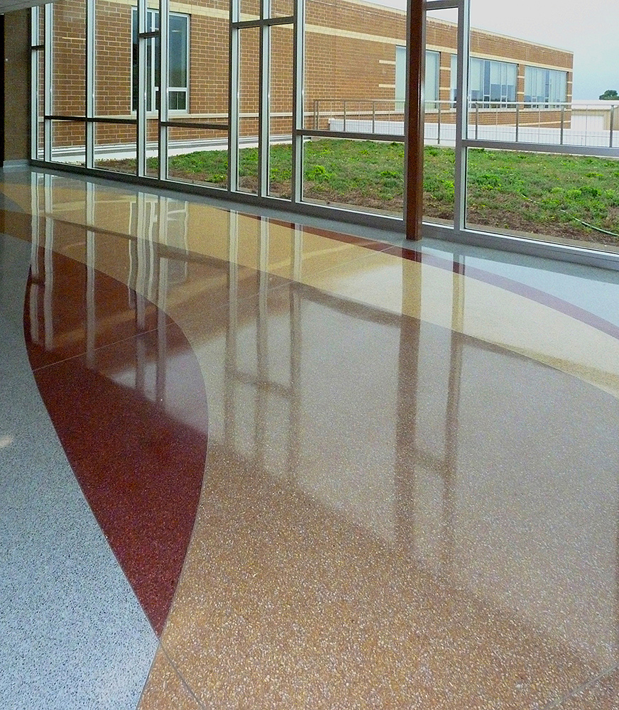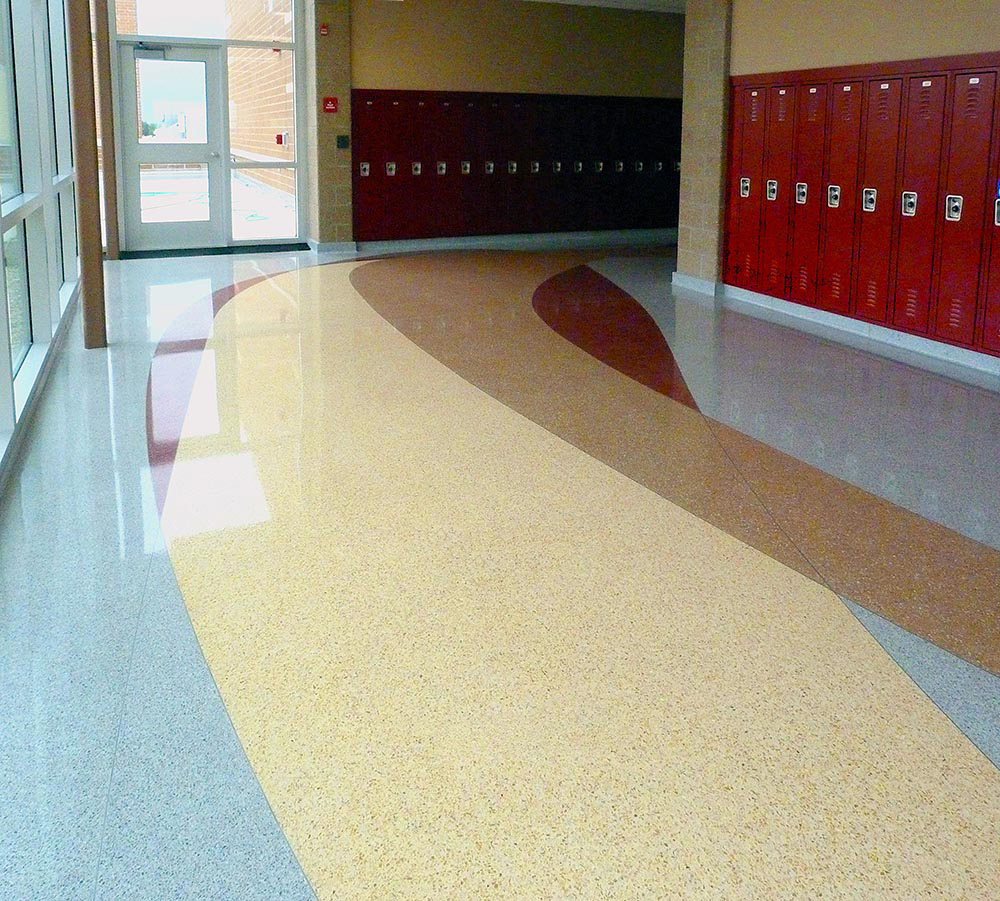 “That the school district installed terrazzo again in the new building is a testament to their recognition of its longevity and durability,” said George Reigle, project architect with Green/Associates of Deerfield, Illinois, a firm that has completed over 500 school construction projects.